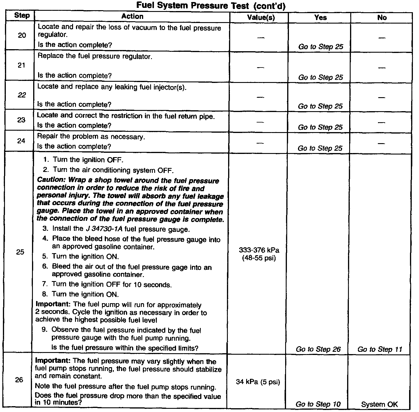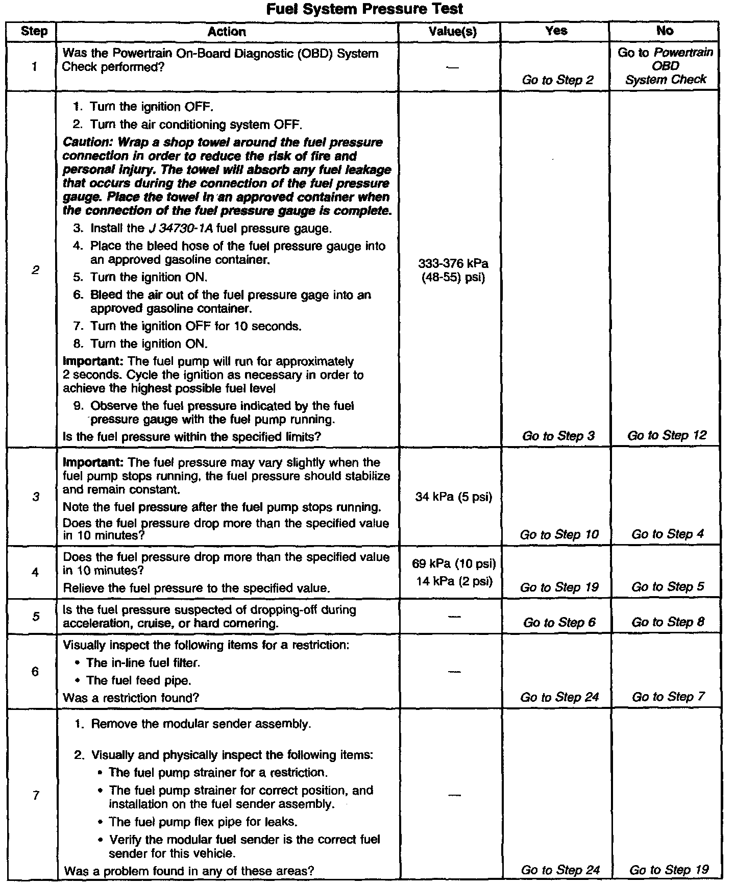 System Diagnosis - Fuel System Pressure Test