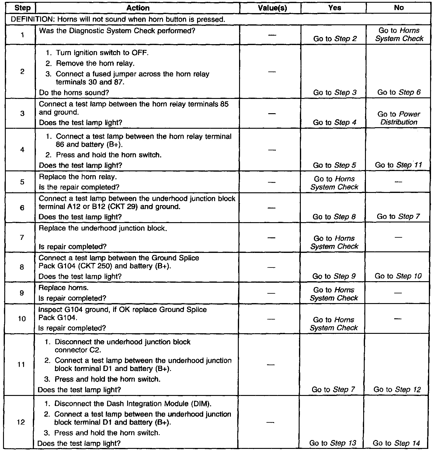 Diagnostic tables provide a procedure that will help you locate the condition in a circuit that is causing a malfunction. All diagnostic procedures are symptom based, to assist you in locating the condition as fast as possible. Diagnostic tables should exist for all possible (realistic) symptoms and Diagnostic Trouble Codes (DTCs).