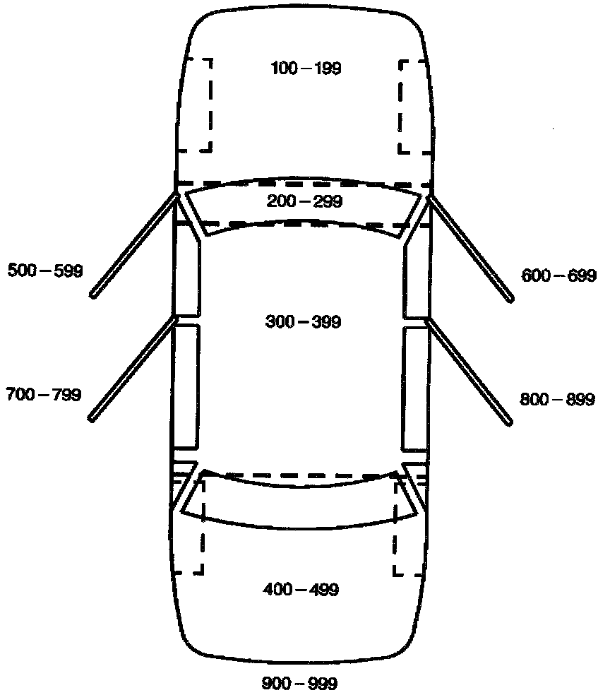 All grounds, in-line connectors, pass-through grommets, and splices have identifying numbers that correspond to where they are located in the vehicle. The following table explains the numbering system.