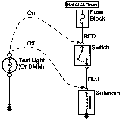 4. If the test light is not self-powered connect the other lead to a battery positive voltage source.