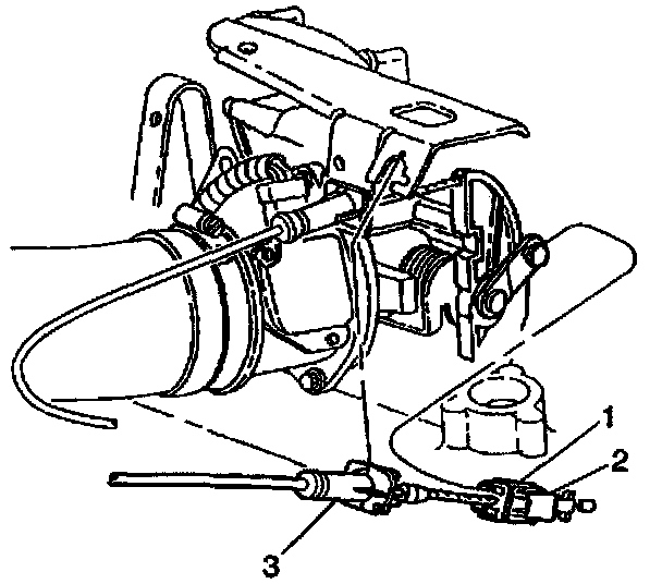 1. Remove the cruise control cable at engine bracket (3) and throttle body cam (1).