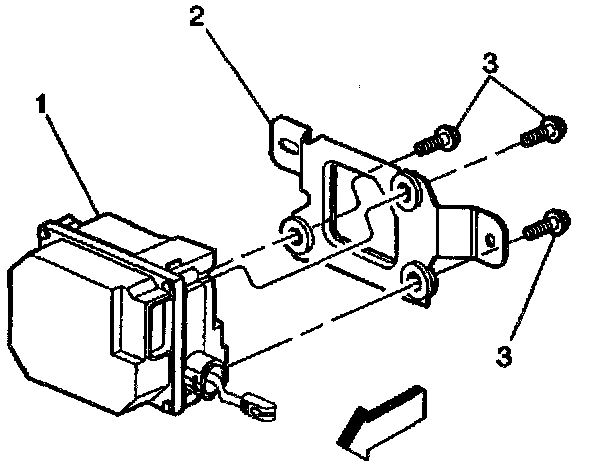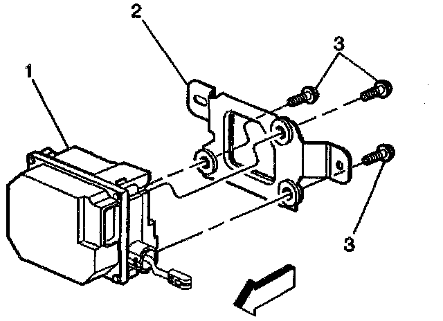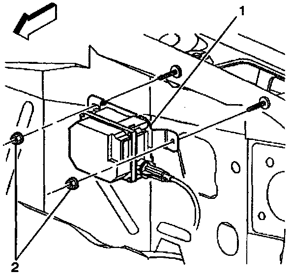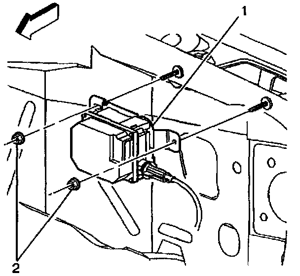 5. Remove the cruise control module bracket (2) from module (1).