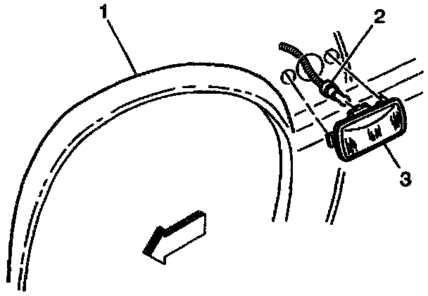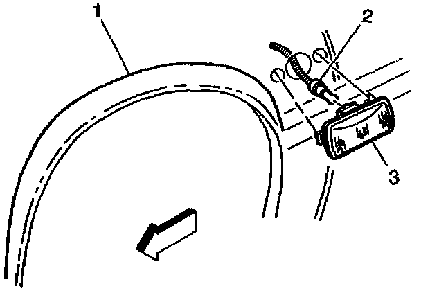 3. Press the rear of the repeater lamp (3) to engage the tab with the front fender (1).