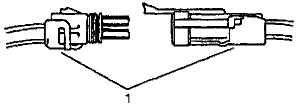 ^ Insert the Weather Pack(R) terminal removal tool into the front (mating end) of the connector cavity until it rests on the cavity shoulder (1).