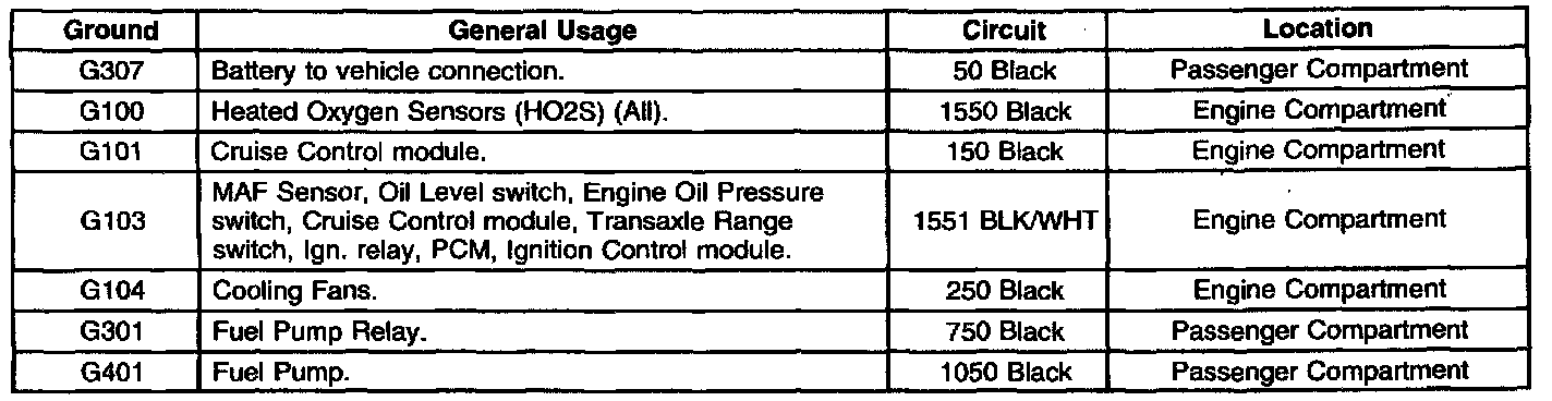 There are several vehicle grounds that are essential for proper powertrain system operation. Loose or poor ground connections may cause widely varying problems, from flickering telltales to PCM DTCs to driveability problems. The PCM Power and Ground Check (2 of 2) should be performed when referred to by other diagnostics or when erratic or intermittent problems defy traditional diagnosis. The PCM Power and Ground Check (2 of 2) chart lists these grounds and other pertinent information that will allow you to investigate a possible loose or faulty ground connection.
