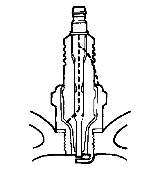 Flashover occurs when a damaged spark plug boot, along with dirt and moisture, permits the high voltage charge to short over the insulator to the spark plug shell or the engine. Should misfiring occur before the recommended replacement interval, locate and correct the cause.