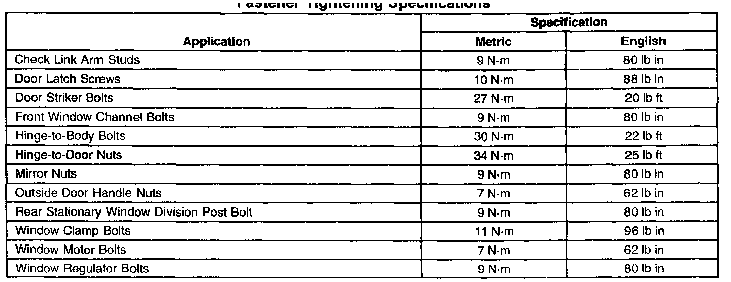 Fastener Tightening Specifications: