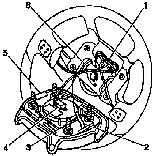 Important: Note the driver inflator wire routing positions, the redundant control routing positions, and the horn wire routing positions for the correct re-assembly.