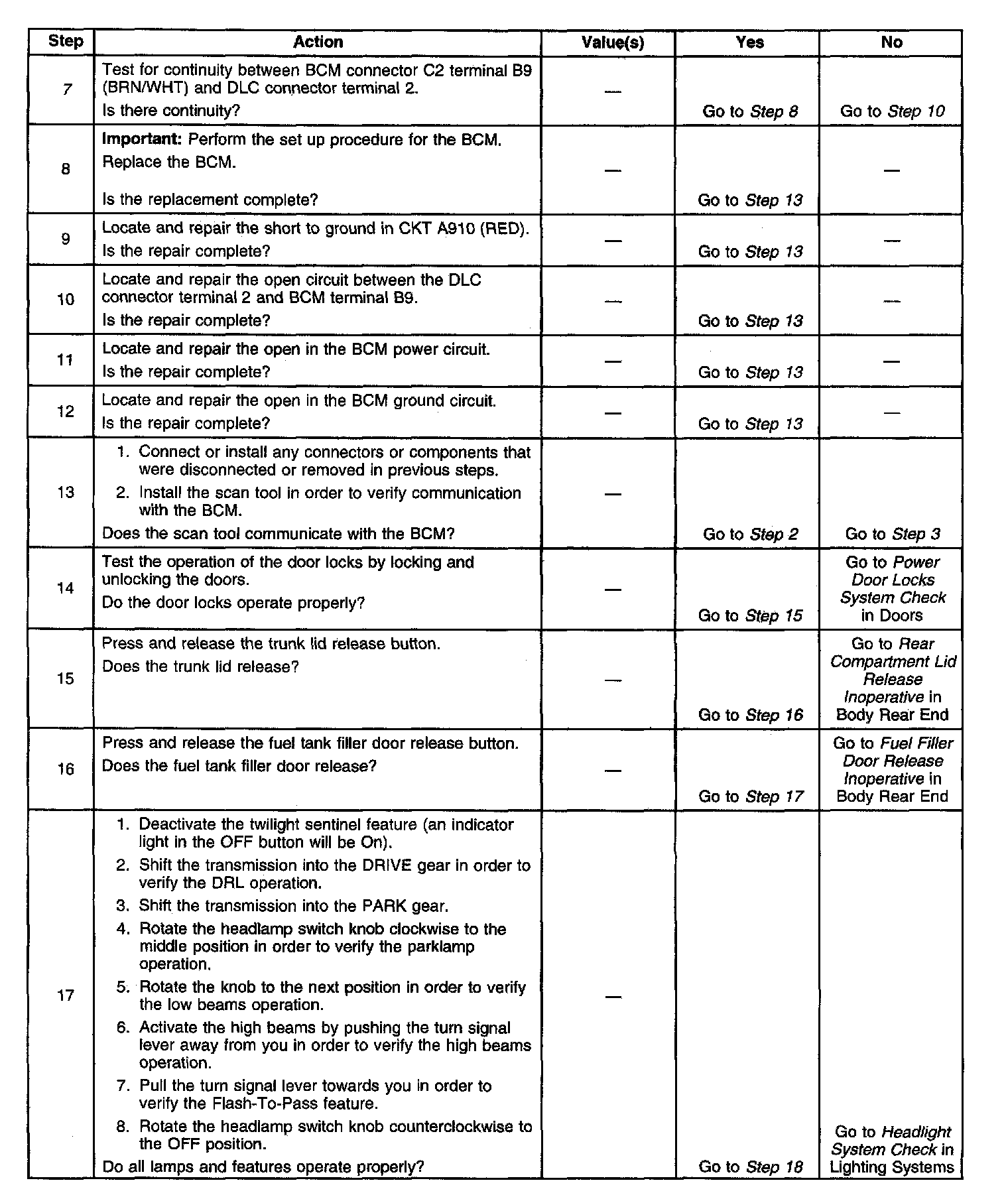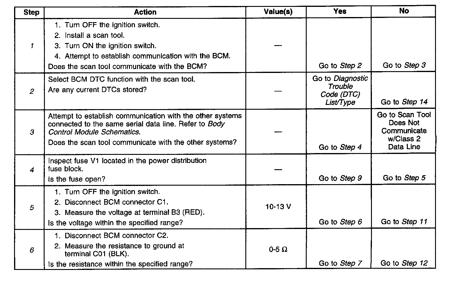 6. This step tests the BCM ground circuit for an open.