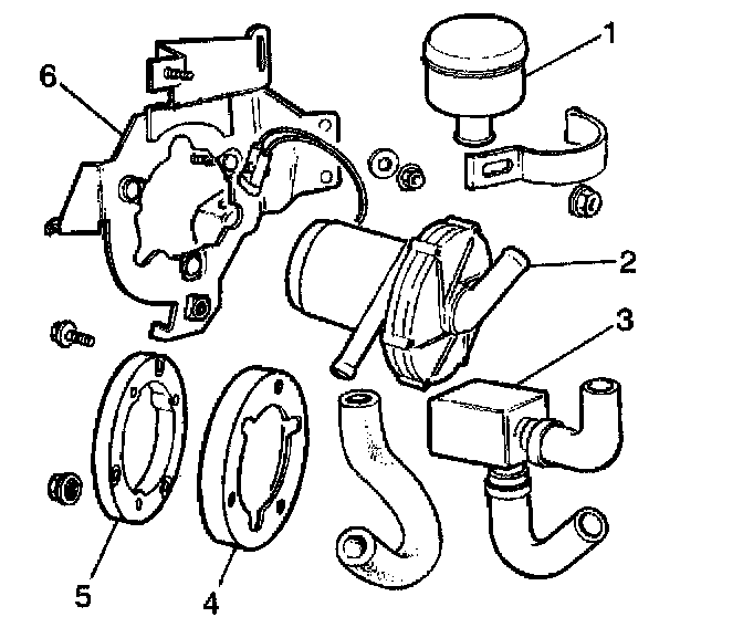 2. Install the secondary air pump to the secondary air pump damper ring (4).