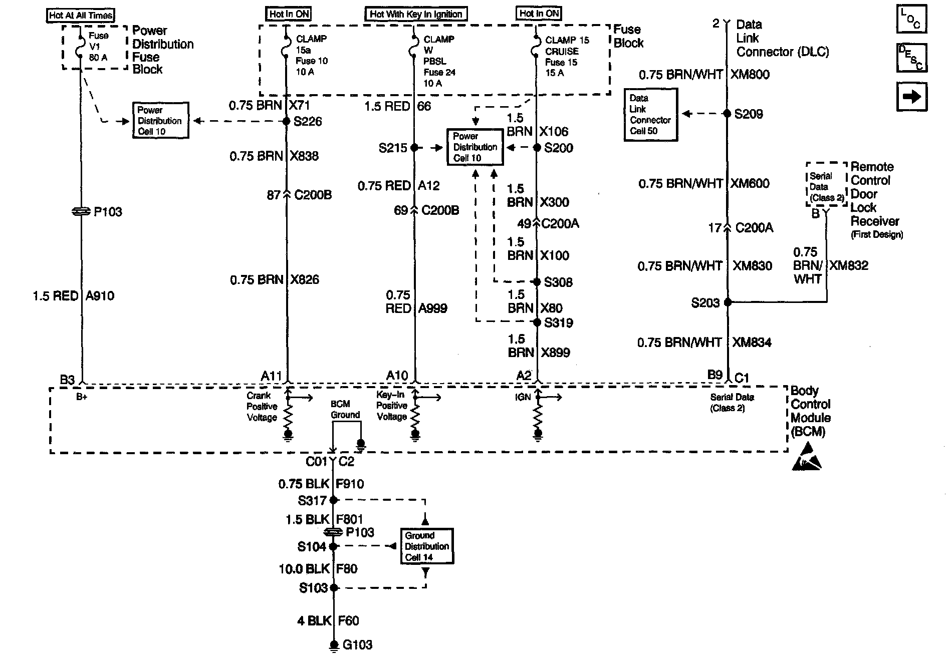 Body Control Module Schematics: BCM Power, Ground And DLC: