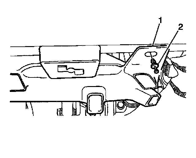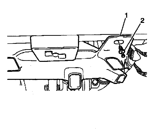 2. Remove the passenger side floor air outlet retainer (2).