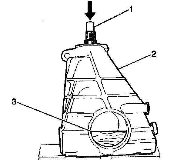 Important: Support the differential drive pinion gear as it is driven from the housing or place a piece of wood (3) for the differential drive pinion gear to drop onto upon removal.