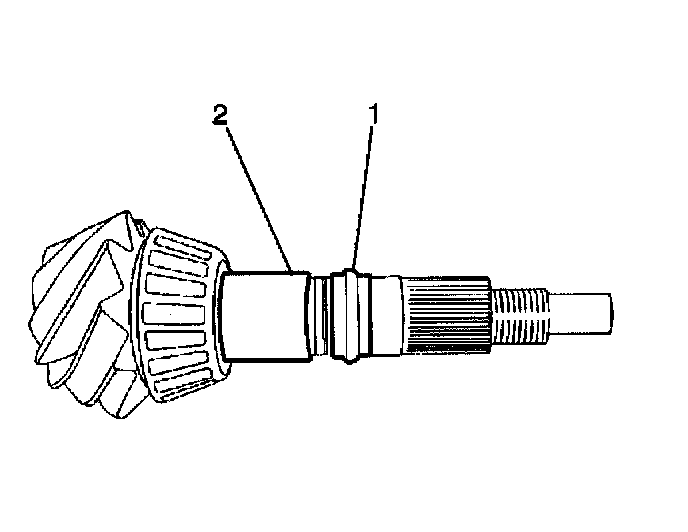 5. Remove the differential drive pinion gear bearing spacer (1) from the differential drive pinion gear (2).
