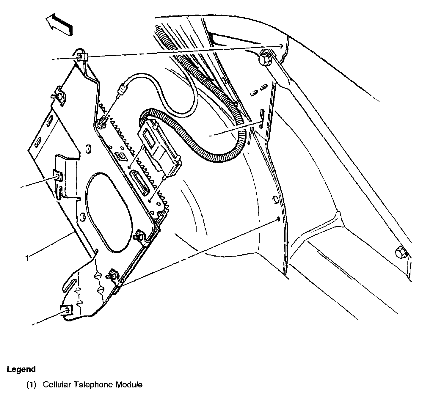 In the right side of the rear compartment, near the power antenna motor