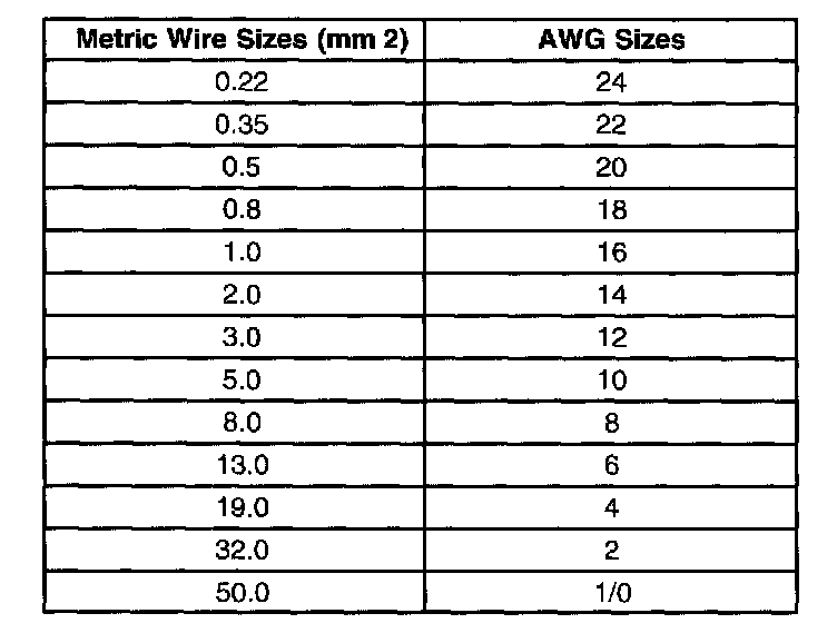 Wire Size Conversion Table: