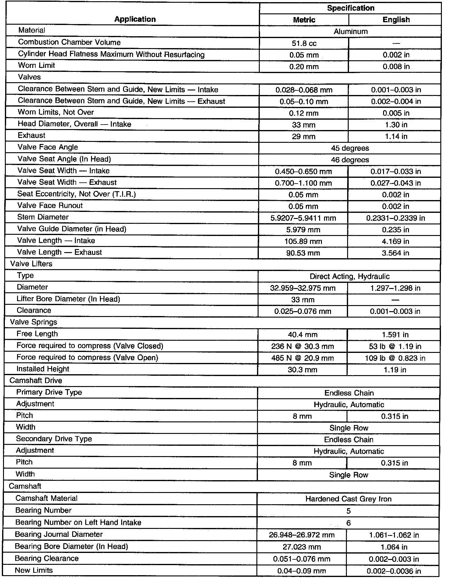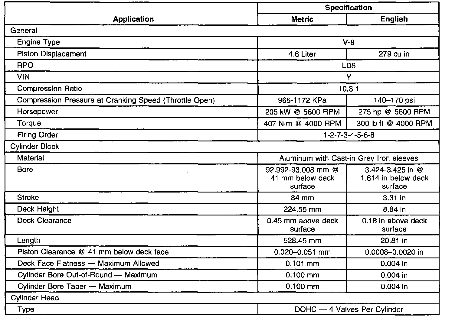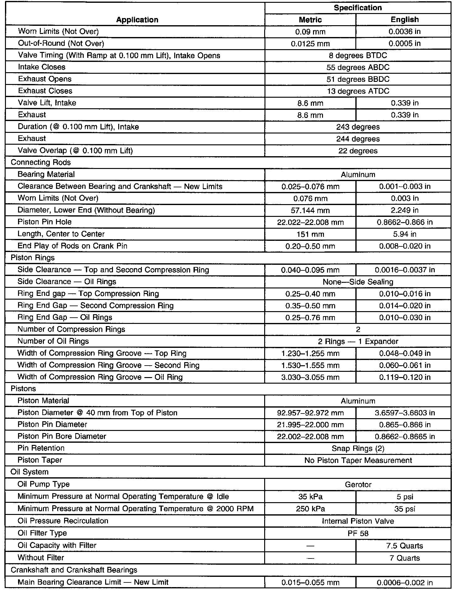 Engine Mechanical Specifications