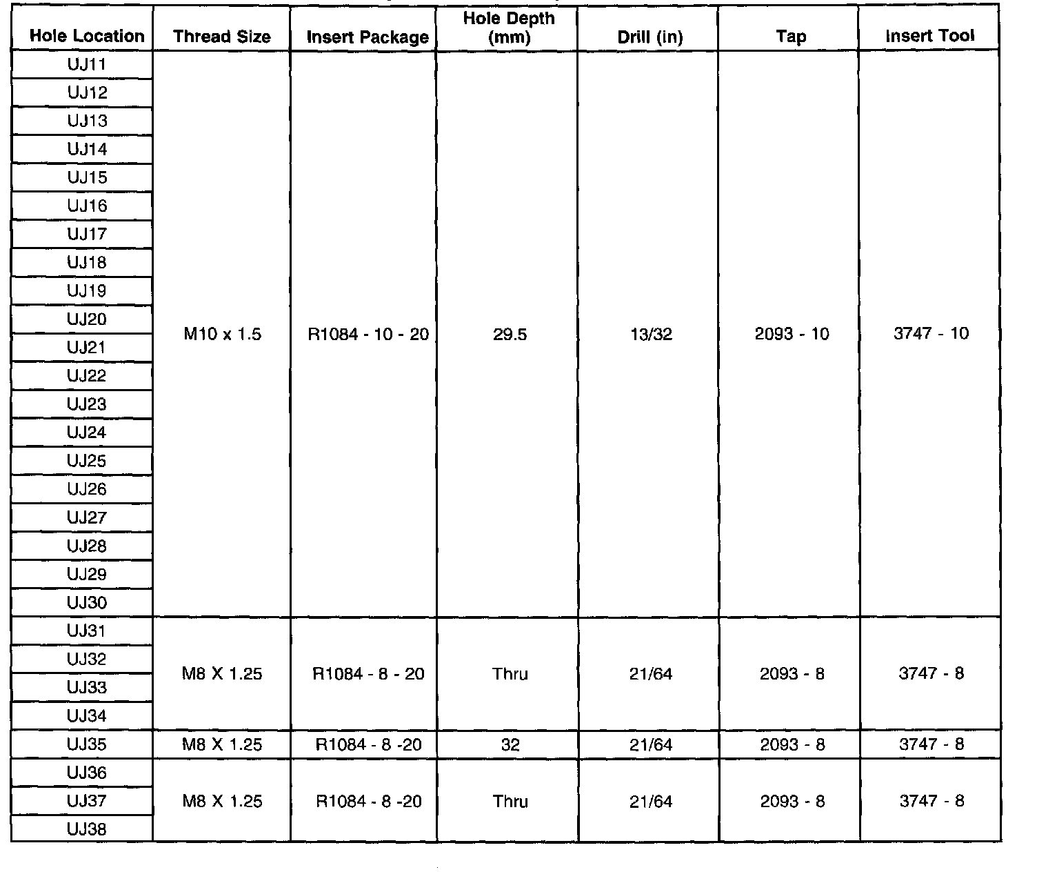 Thread Repair Specifications