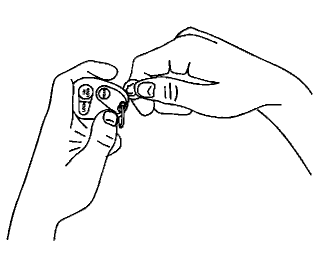 REMOVAL PROCEDURE1. Insert a small coin between the two halves of the transmitter case at the slot provided near the key ring hole.