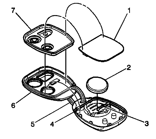 1. Install the battery (2) with the positive (+) side down. Use one 3 V CR2302 battery or the equivalent.