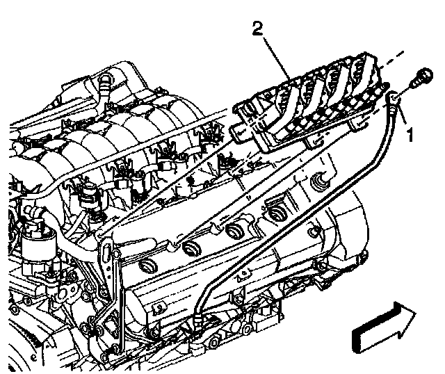 6. Remove the ignition coils and control module (2) as an assembly from the camshaft cover.