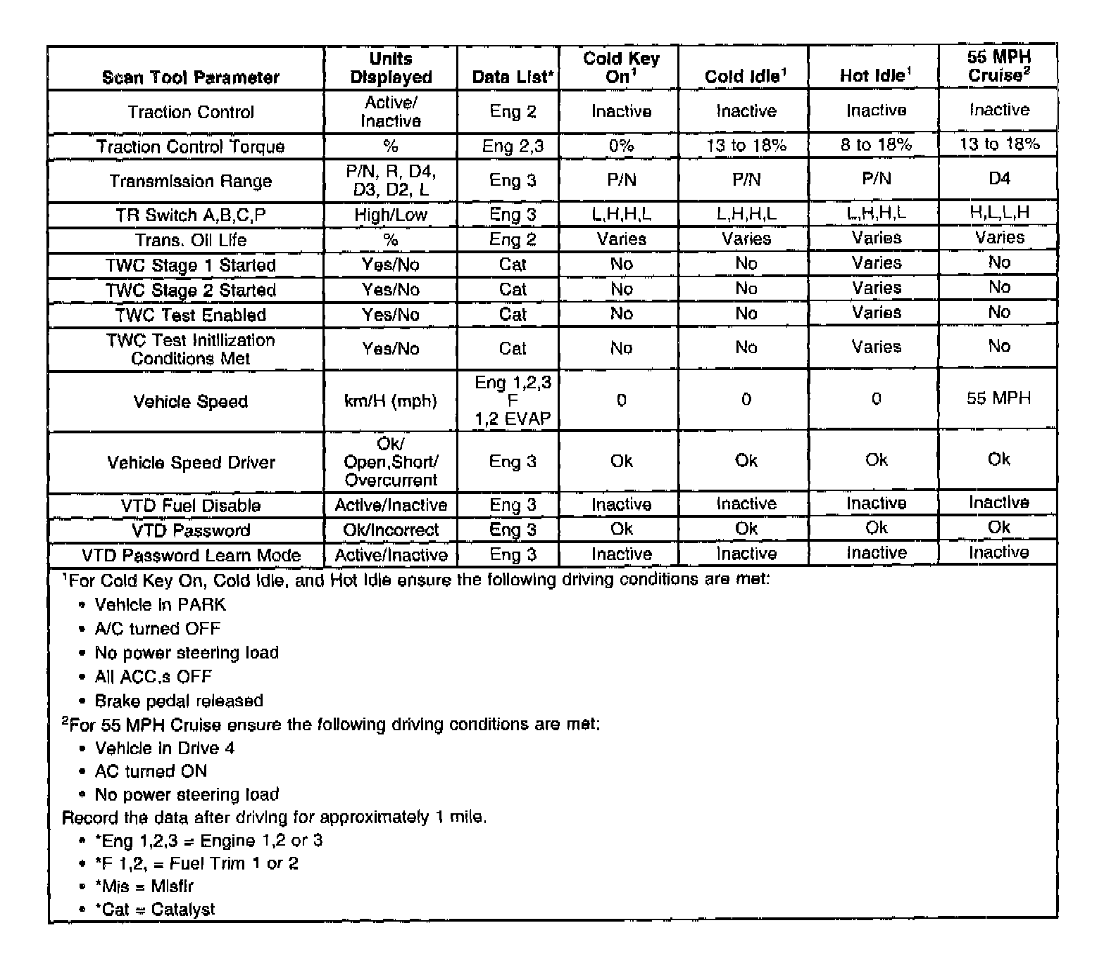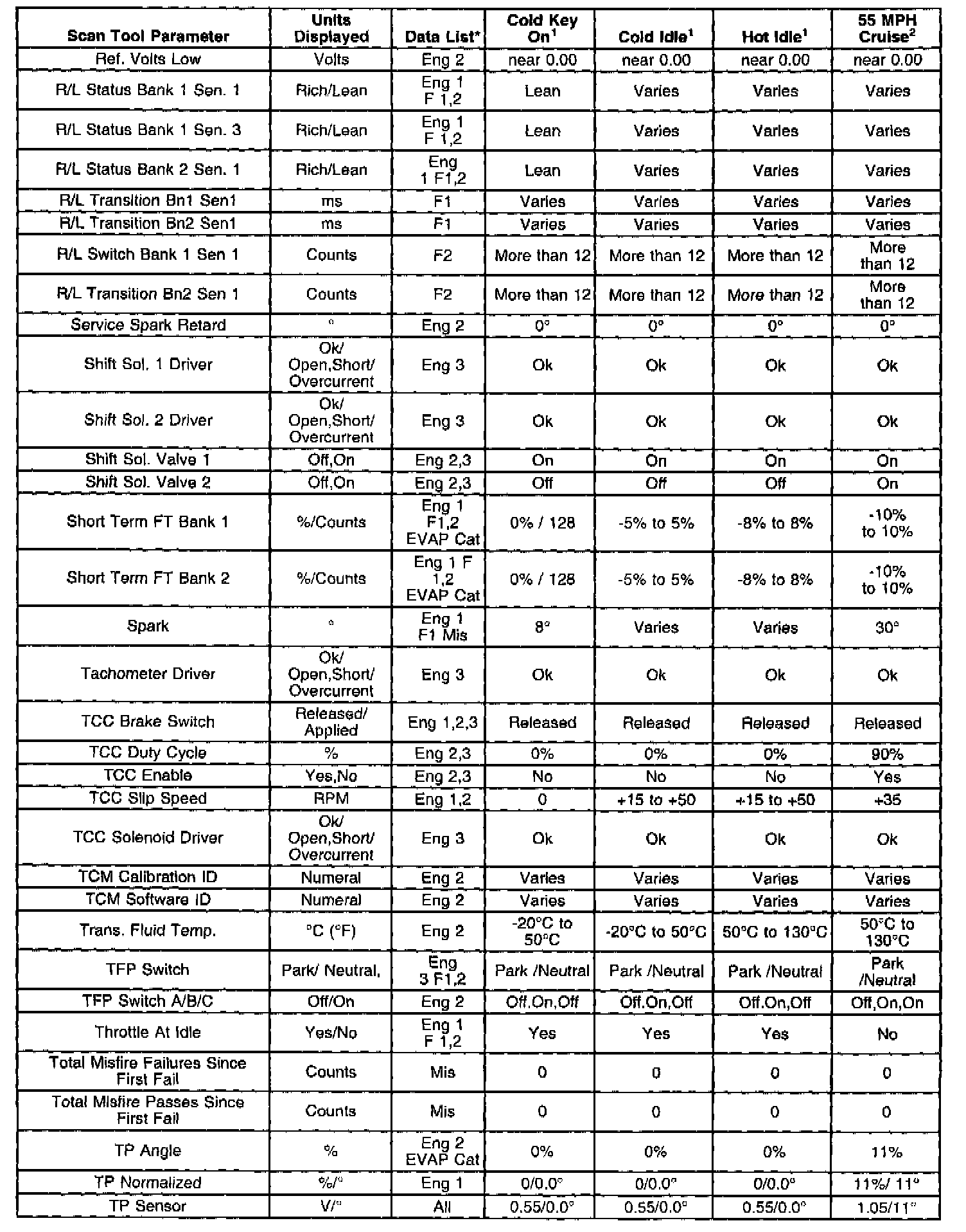 The column labeled Data List indicates where a parameter is located on the scan tool. Refer to the scan tool operating manual for instructions on how to access the individual data lists. The following is a description of each term listed:
