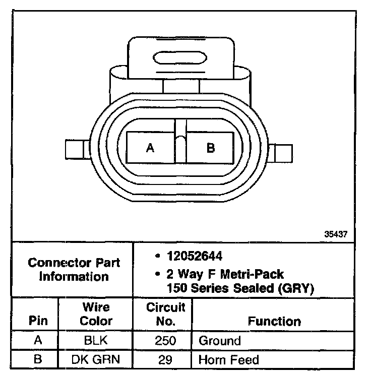 Connector end views show the cavity or terminal locations for all the related 2-pin or larger connectors shown in the system schematic(s). The drawings show the connector's face as seen alter the harness connector has been disconnected from a component or mating connector. Unused cavities are left blank in the table.