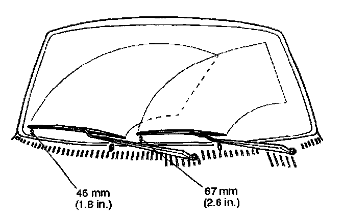 3. Install the wiper arm on the wiper transmission drive shaft while maintaining the following distances between the end of the wiper blade and the bottom of the windshield: