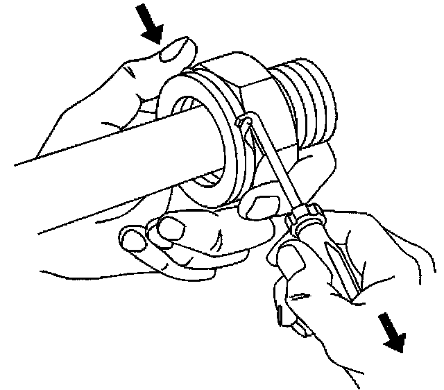 ^ Tighten the engine oil cooler line retainer to 8 Nm (70 inch lbs.).