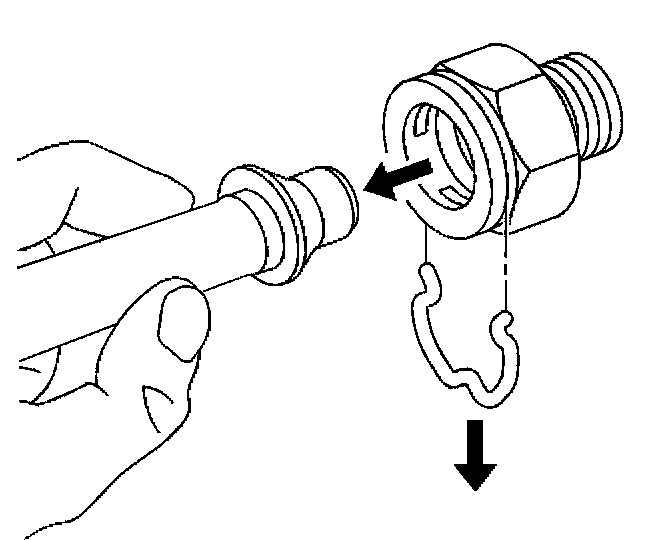 3. Remove the engine oil cooler line and retaining clip from the cooler fitting.