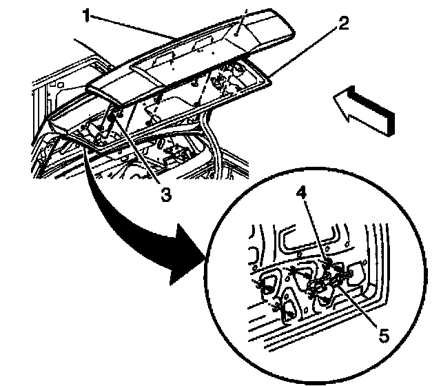 5. Connect the backup lamp connector (5) to the rear compartment lid wiring harness.