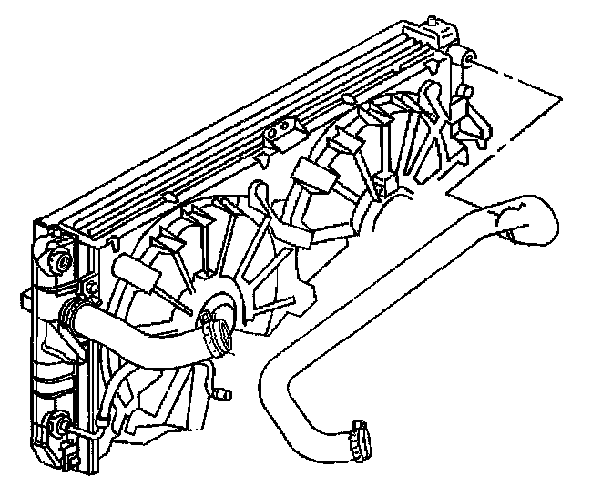 6. Tilt the radiator forward to gain access to the inlet radiator hose clamp.