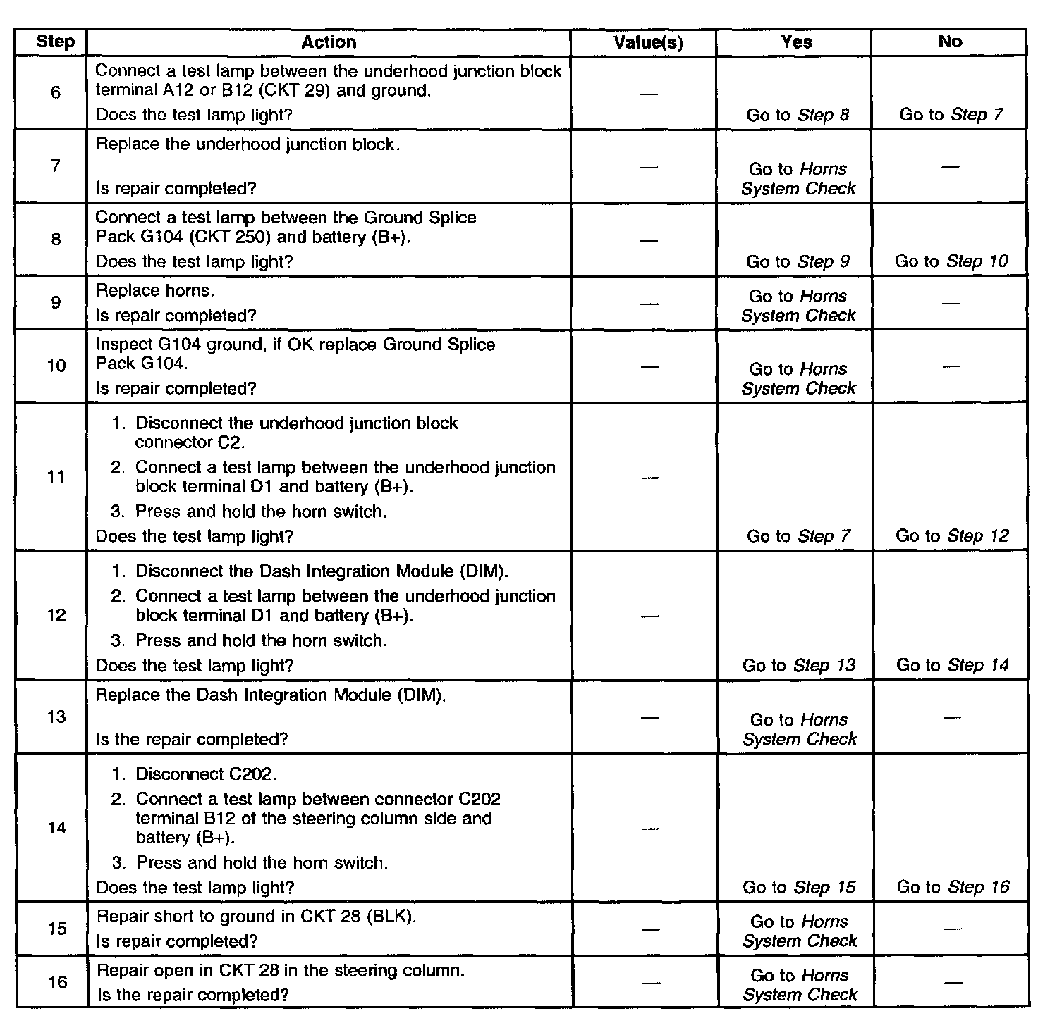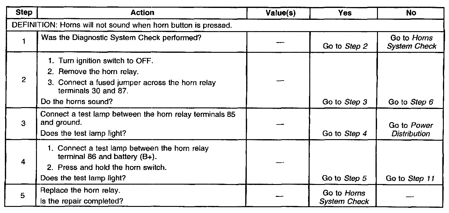Diagnostic tables provide a procedure that will help you locate the condition in a circuit that is causing a malfunction. All diagnostic procedures are symptom based, to assist you in locating the condition as fast as possible. Diagnostic tables should exist for all possible (realistic) symptoms and Diagnostic Trouble Codes (DTCs).