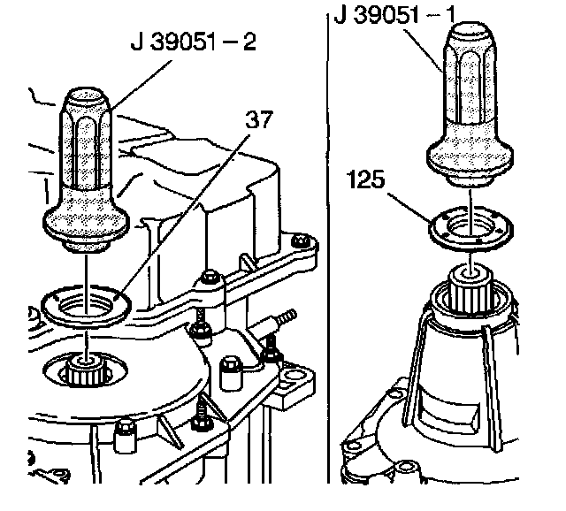 - Install the left-hand drive axle seal using the J 39051-2 and a hammer.