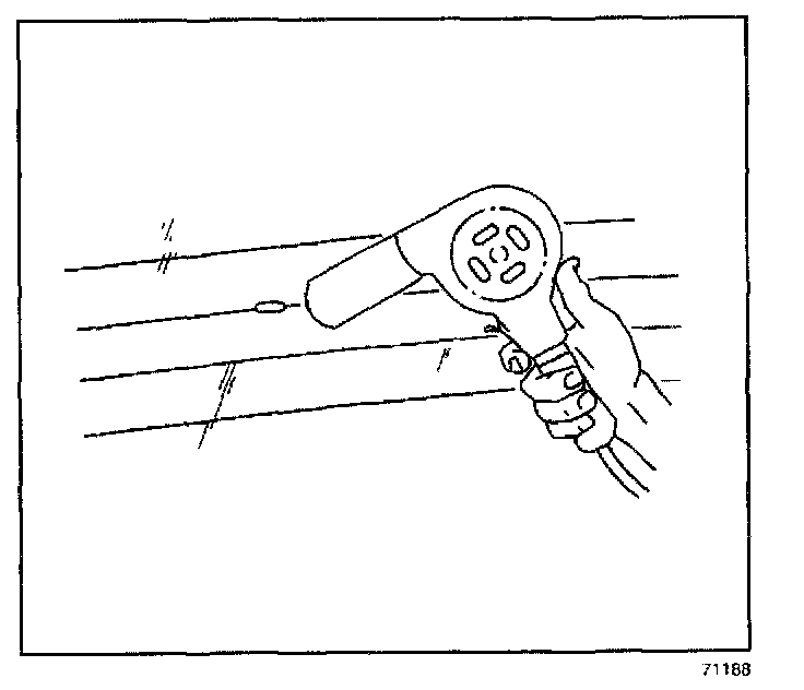 ^ Hold the heat gun nozzle 25 mm (1 in) from the repair surface.