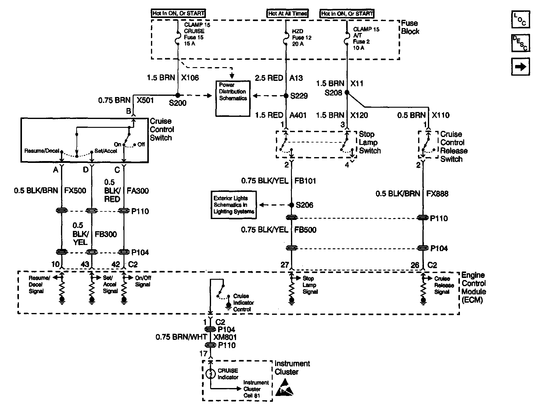 Cruise Control Schematics: Stop Lamp Switch, Cruise Control And Cruise Control Release Switch: