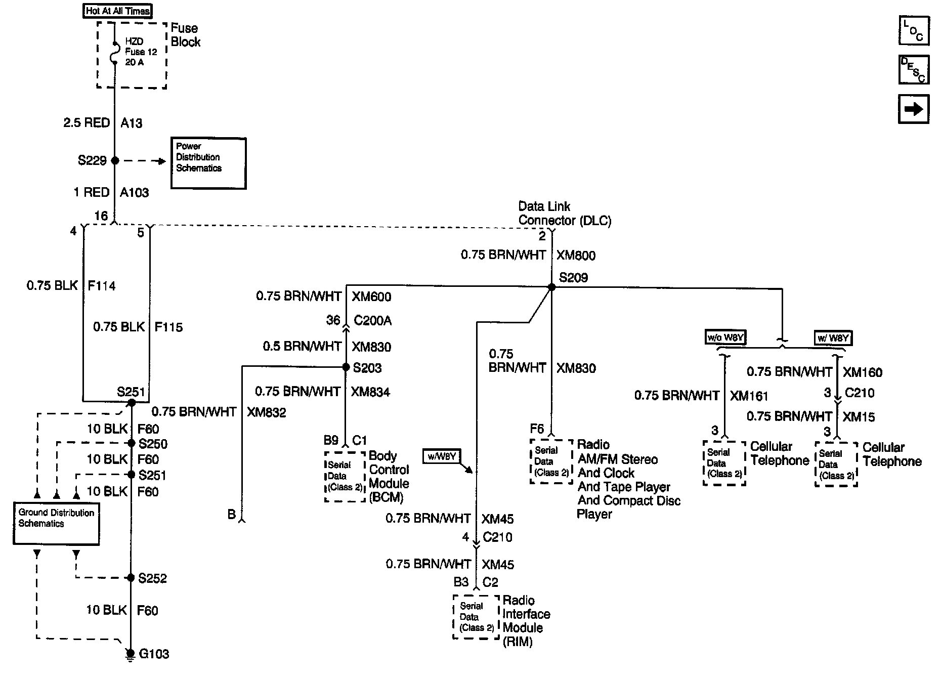 Data Link Connector (DLC) Schematics: Power, Ground, And Class 2 Serial Data Circuit: