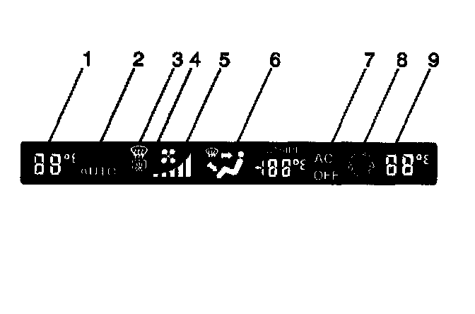 The following features apply to the Driver (1) and Passenger (9) Temperature control functions: