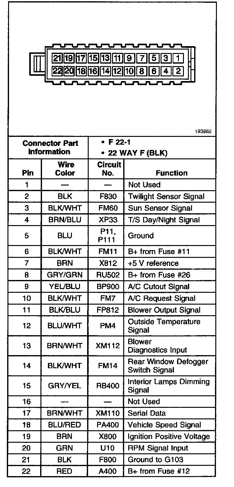 Heater And A/C Control Connector: