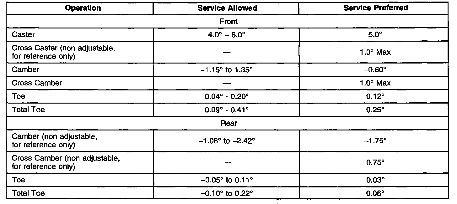 Wheel Alignment Specifications