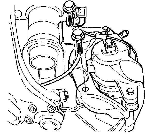 Important: Support the brake caliper assembly. DO NOT allow the brake caliper assembly to hang freely or damage may occur to the flex hose.