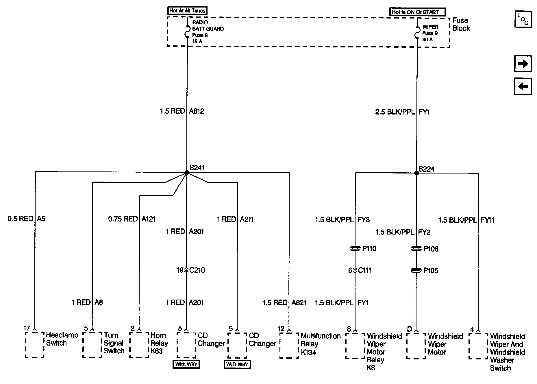 Power Distribution Schematics: Fuse Block, WSWA System And Multifunction Relay: