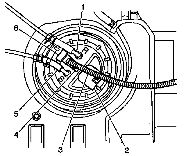 3. Disconnect the electrical connector (6) from the fuel tank pressure sensor.