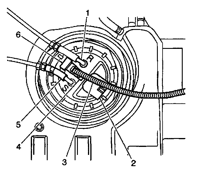 4. Continuously pressurize the fuel tank at the fuel sender return connection (1) with compressed air regulated to 7-10 kPa (1-1 1/2 psi).