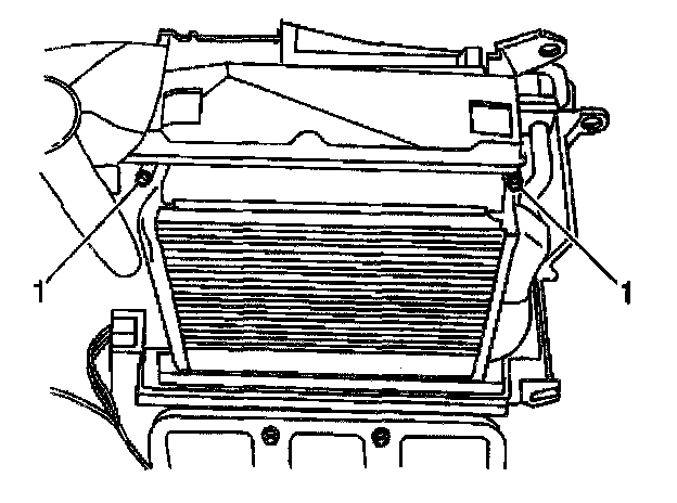 4. Remove the heater core retaining fasteners (1).