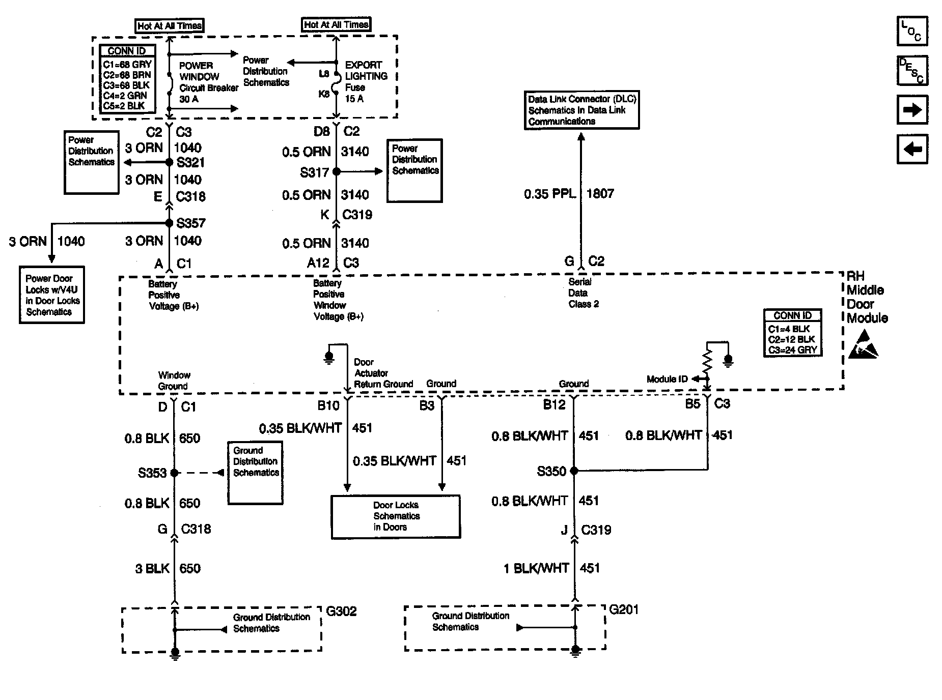 Door Control Module Schematics: Right Middle Door Module (RMDM) Power, Gd., Inputs And Outputs (W/V4U):