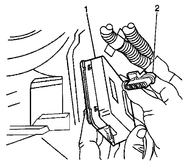 7. Remove the electrical connector (2) from the blower motor control module (1).