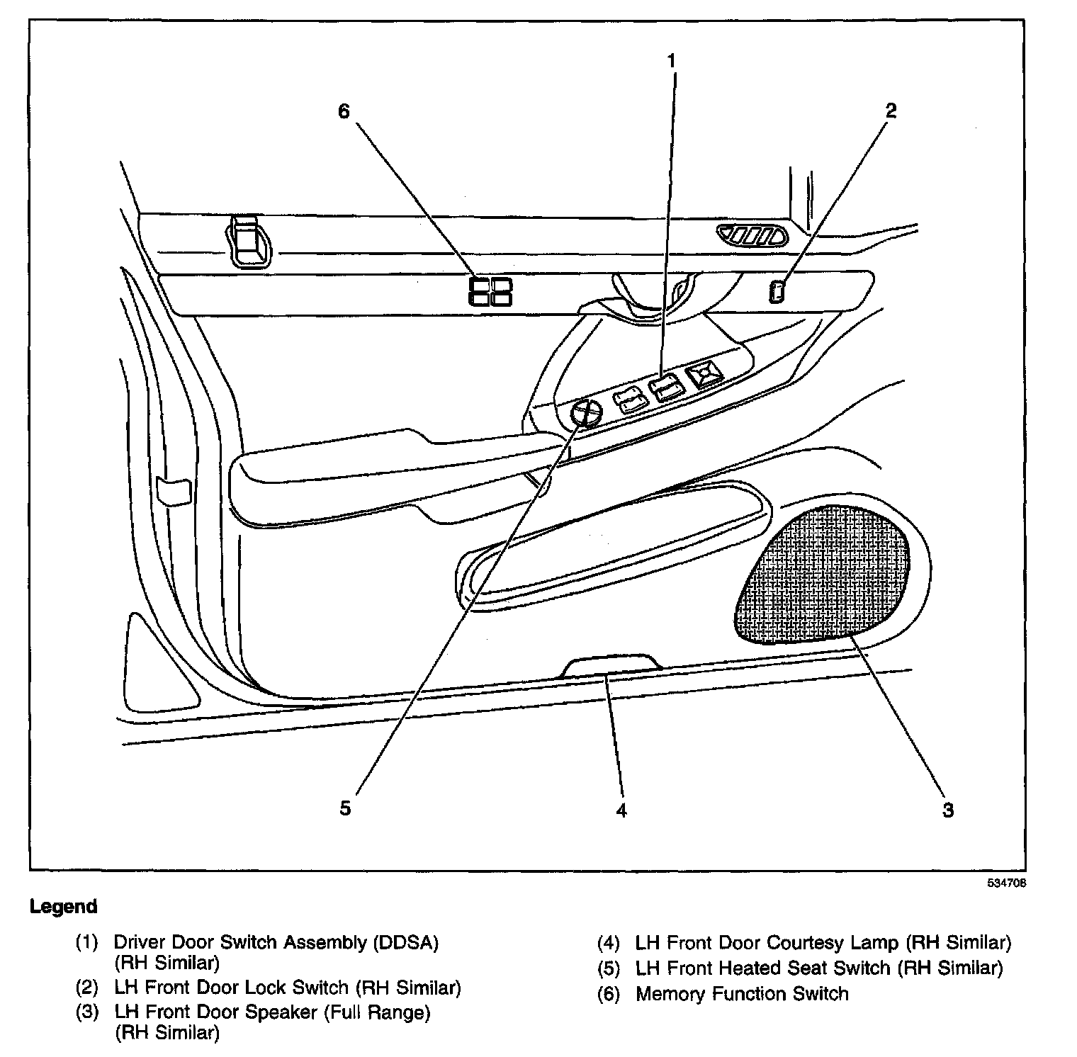 Center top of the left hand front door, in the door trim panel below the inside door handle