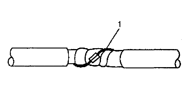 Twisted/shielded cable is used in order to protect wiring from electrical noise. Two-conductor cable of this construction is used between the radio and the Delco-Bose(R) speaker/amplifier units and other applications where low level, sensitive signals must be carried. Follow the instructions below in order to repair the twisted/shielded cable.1. Remove the outer jacket (1). Use care not to cut into the drain wire of the mylar tape.