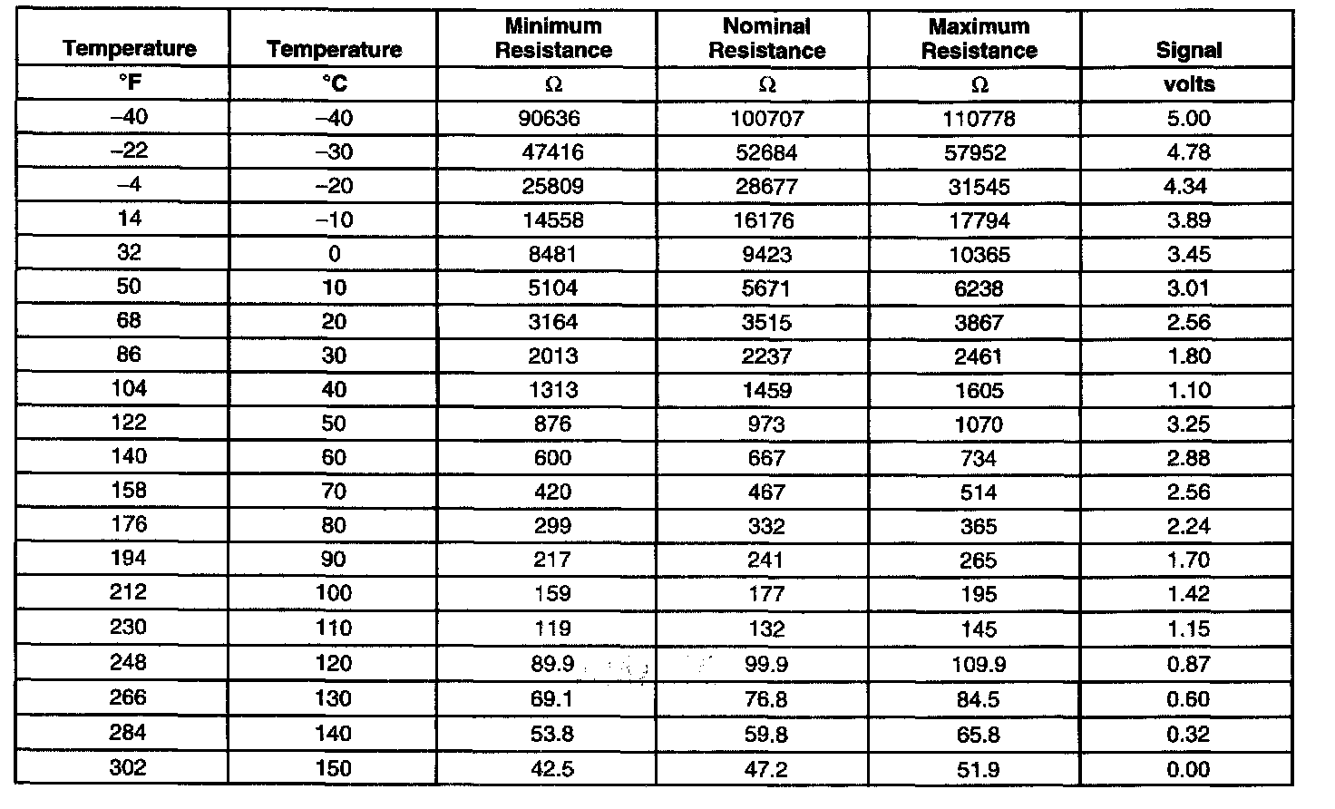 Transmission Fluid Temperature (TFT) Sensor Specifications